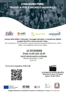 Il 16 dicembre saremo felici di incontrarvi in un importante momento di restituzione degli esiti dei progetti avviati grazie ai fondi PNRR e co-progettati con ATS VEN 9, Comune di Treviso e l’UOC Disabilità adulta dell’ULSS 2 Marca Trevigiana.